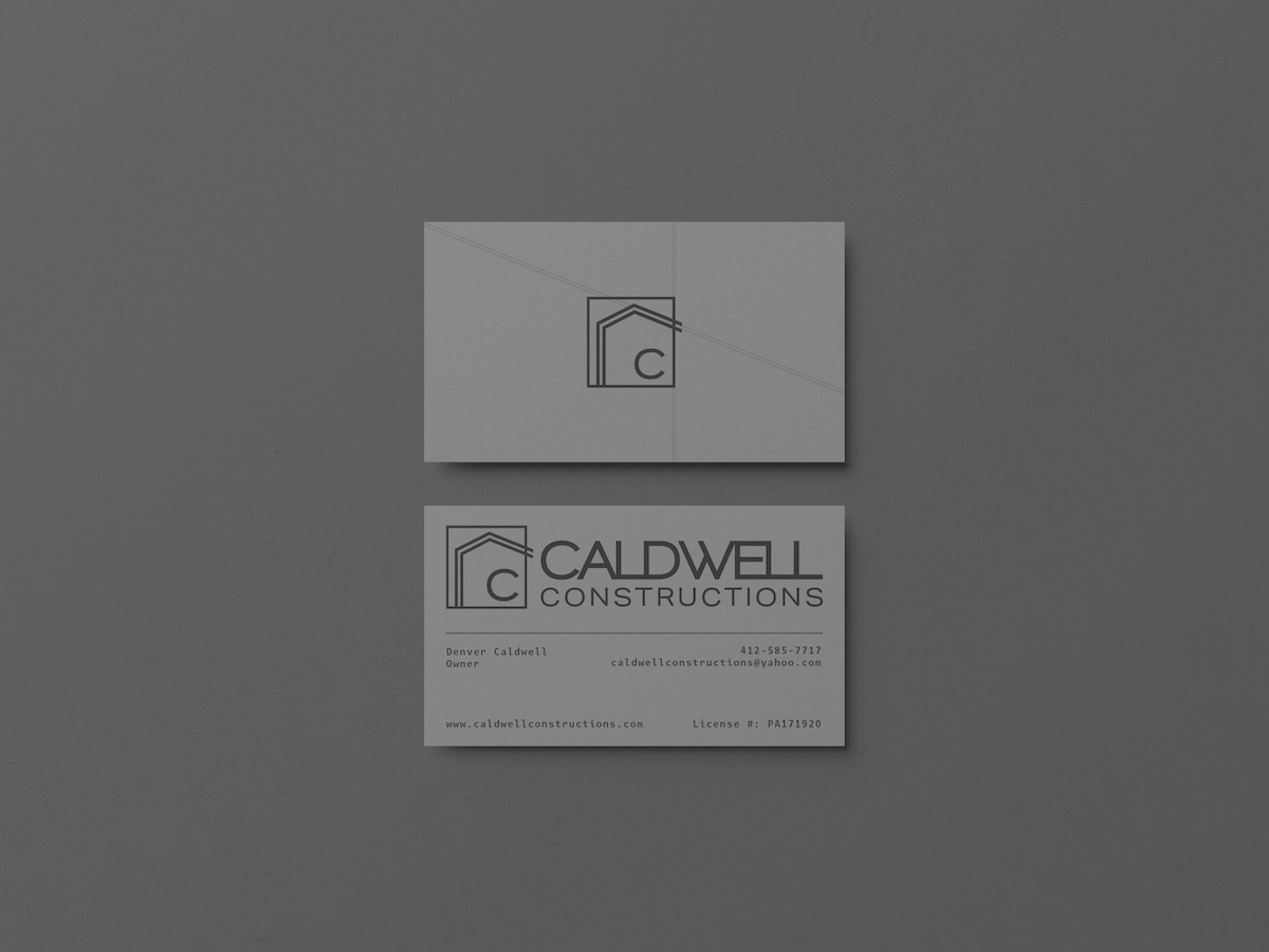 Grey tones are often associated with stability, neutrality, and balance, making them particularly suitable for a construction company that aims to instill trust and confidence in its clients. The soft black accents add depth and contrast, providing visual interest without overwhelming the overall aesthetic. The choice of a sans serif typeface for Caldwell Constructions' branding reflects a modern and forward-thinking approach, perfectly aligned with the essence of new construction and renovation design.